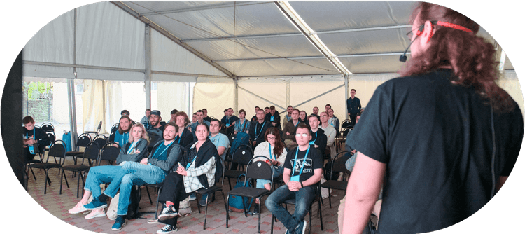 А еще мы много учимся и вообще обожаем развитие и прогресс. Поэтому мы периодически участвуем в различных конференциях и проводим внутренние технические митапы и dev talk-и